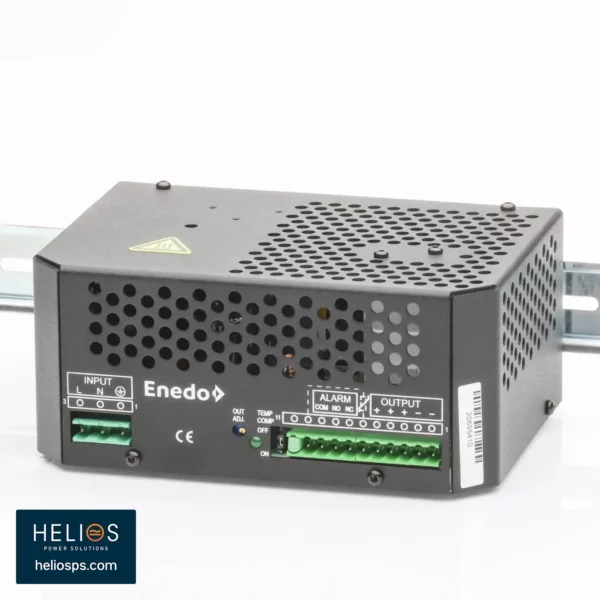 Compact and stable DIN rail battery charger suitable for all types of industrial application. Very low ripple, built-in series diode and temperature regulated output voltage. LED indication for supply output voltage. Stable, mechanical construction, high efficiency, and convection cooling ensure long service life.