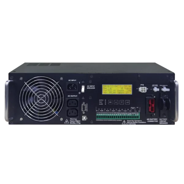 The AC/DC input stage boosts the input voltage to a higher DC voltage, which feeds the DC/AC inverter to generate the required AC output. A built-in fan provides sufficient airflow for operation without de-rating to the specified temperature. The high frequency conversion enables a compact construction, low weight and high efficiency. The unit has full electronic protection. The input and output are filtered for low noise. The use of components with established reliability results in high MTBF.